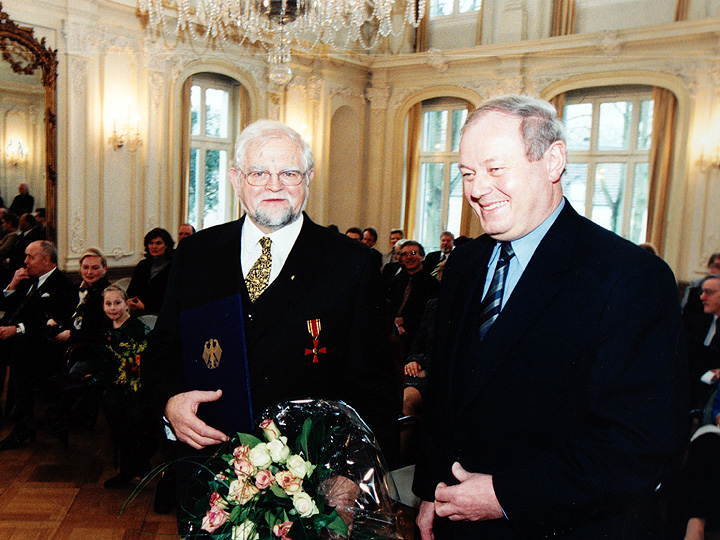 (Foto: Kurt Arentz mit Paul Hebbel (OB Leverkusen) im Schloss Morsbroich, Leverkusen)